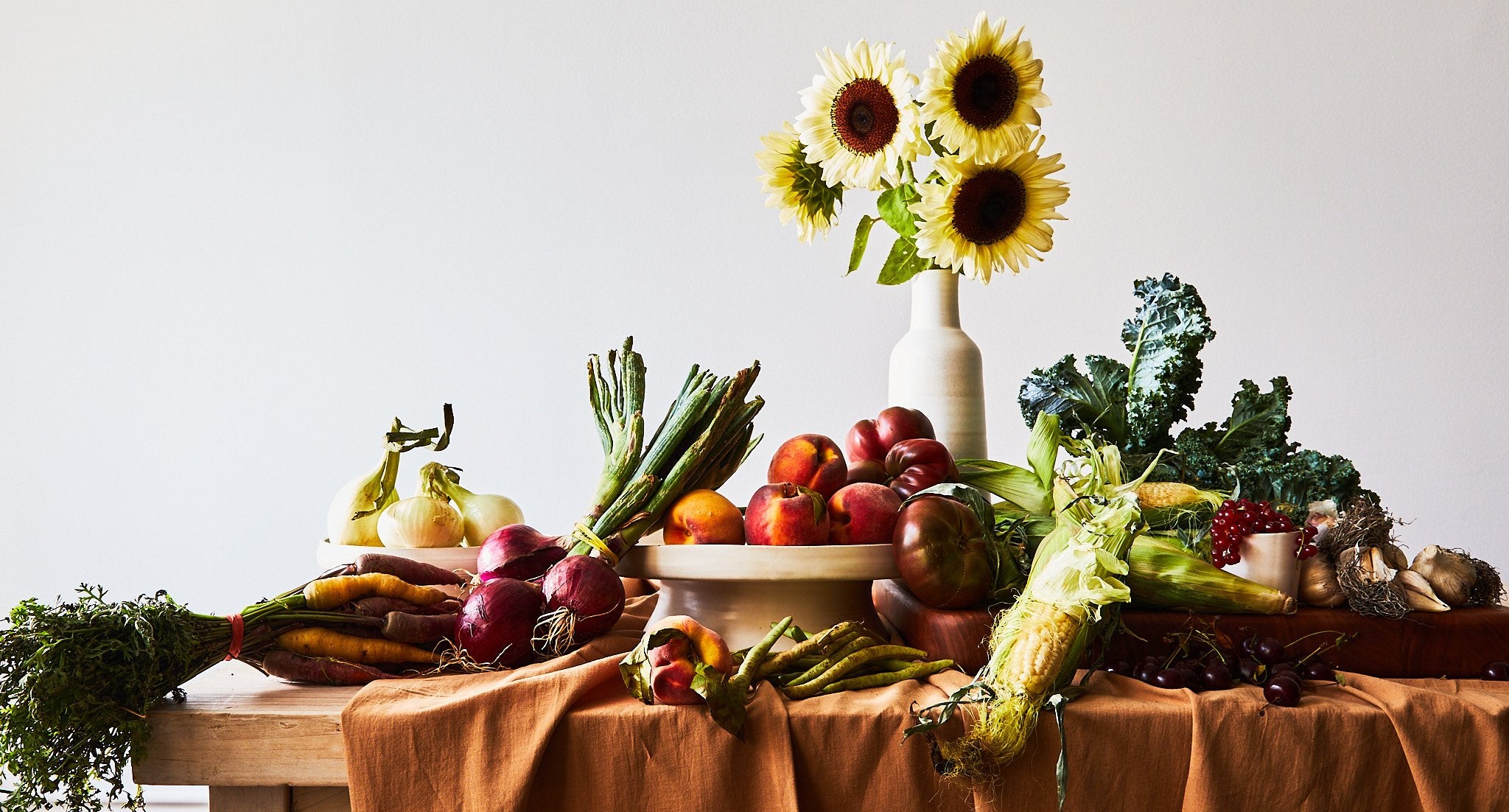 Sunflowers from Tiny Hearts Farm surrounded by the bounty of Hudson Valley. Photography by Kate Jordan.