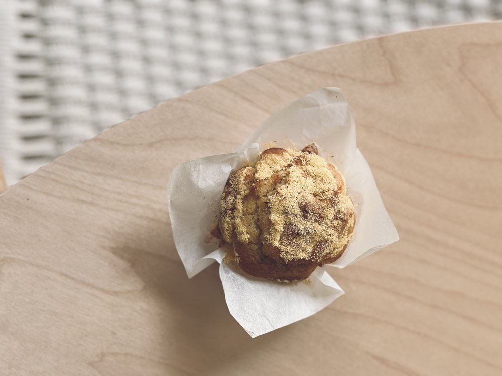 A summer corn muffin with blueberries. Made with ground corn from Hudson Valley mill, Wild Hive, and fresh sweet corn from local farms.