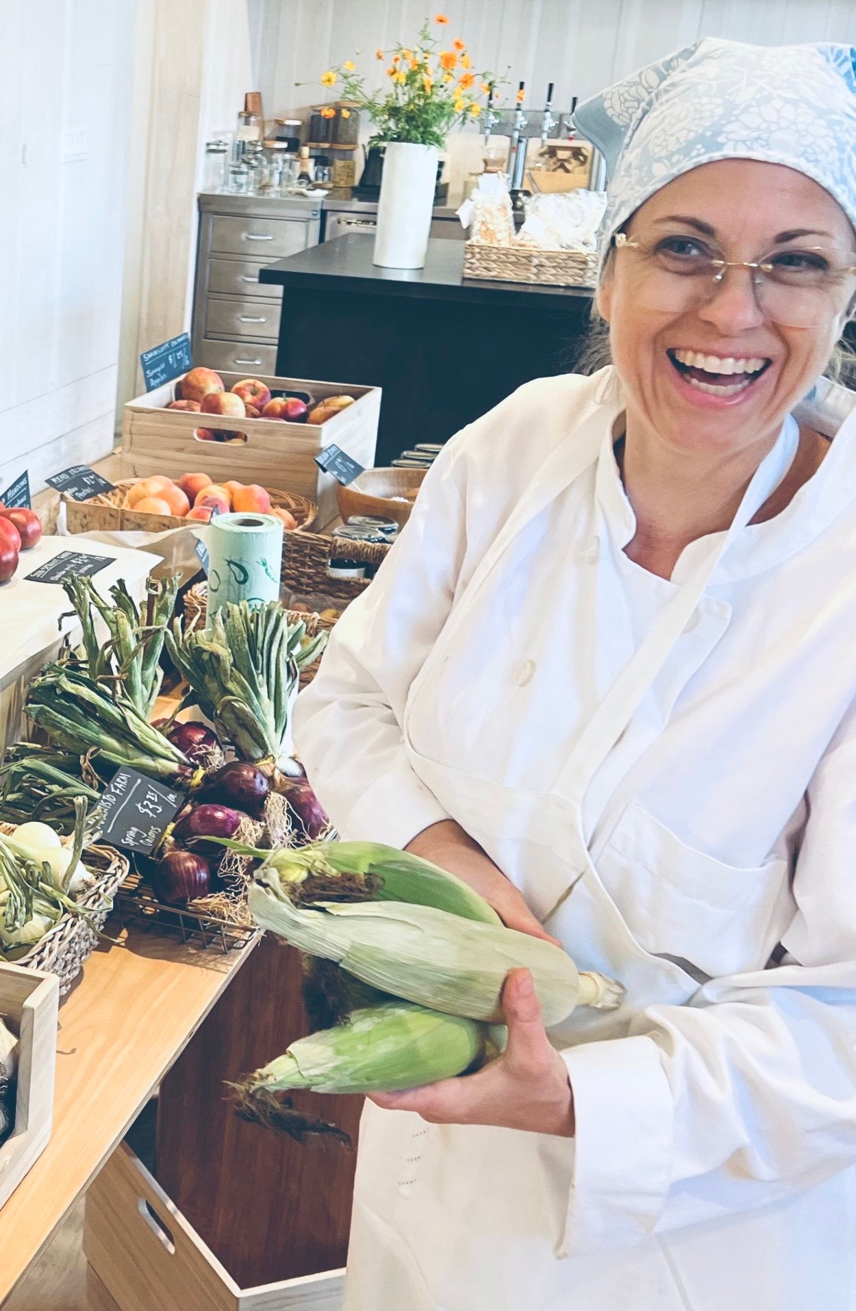 Caught corn handed. Chef Sarah working with local, organic corn varieties.